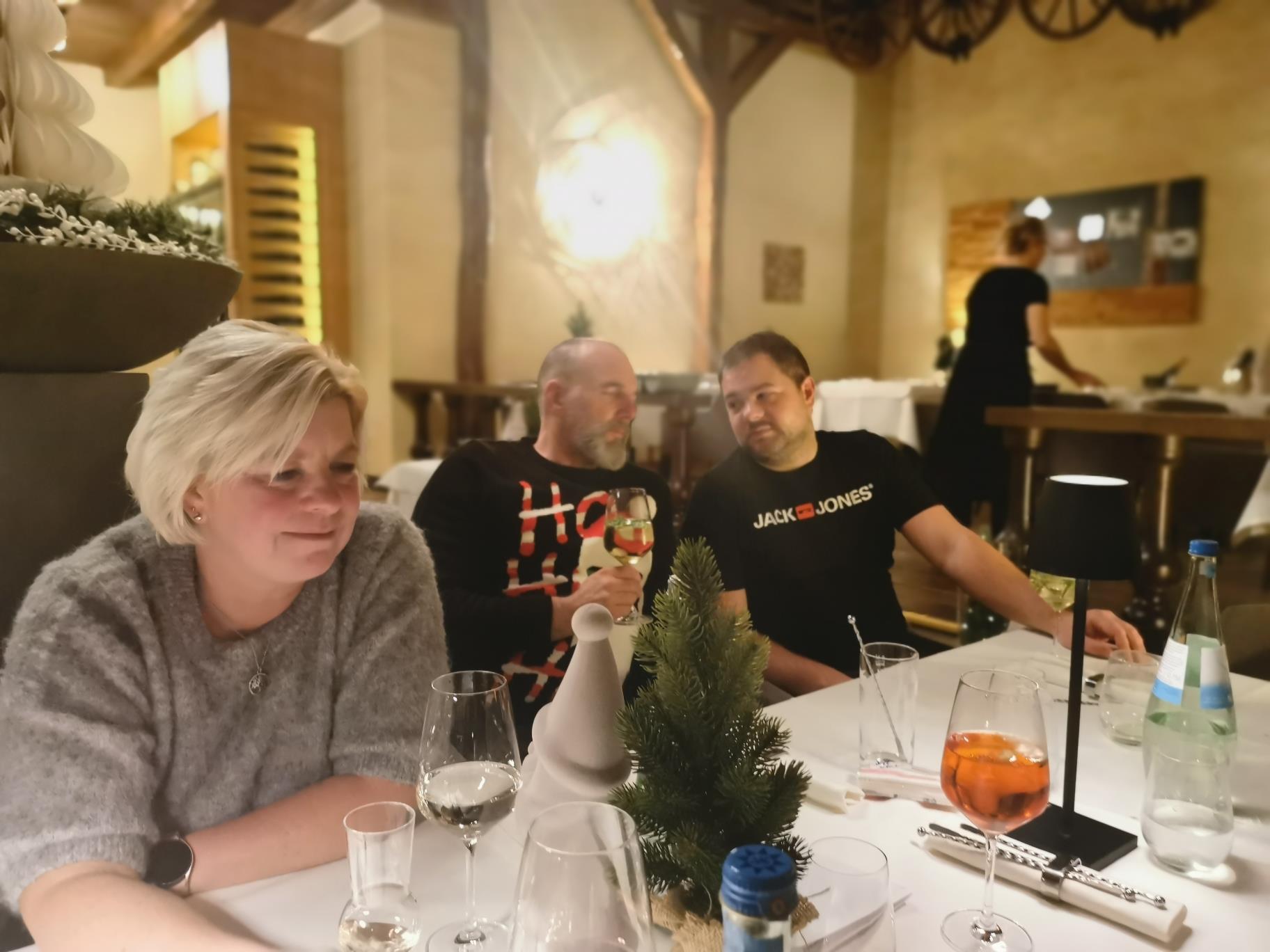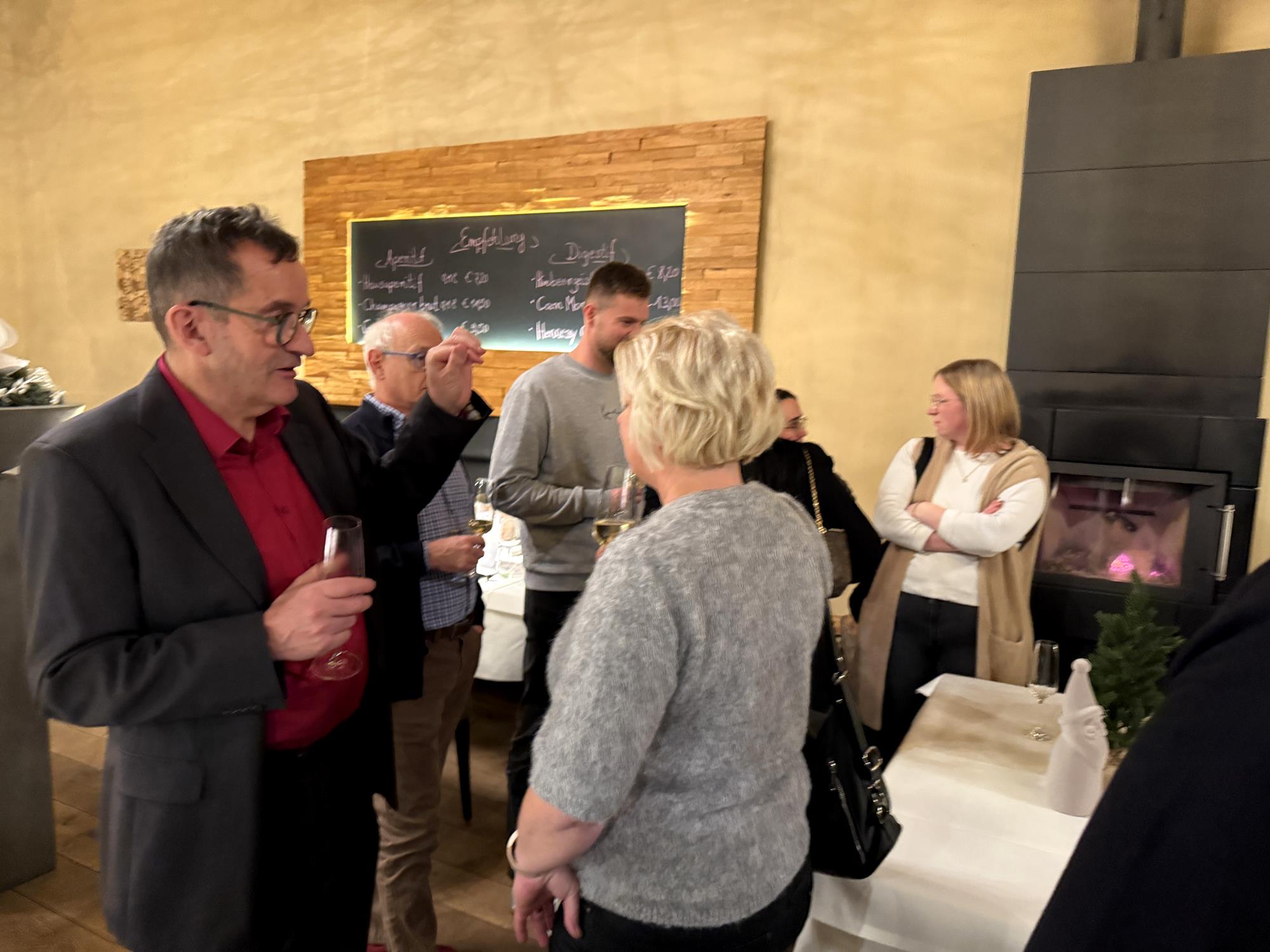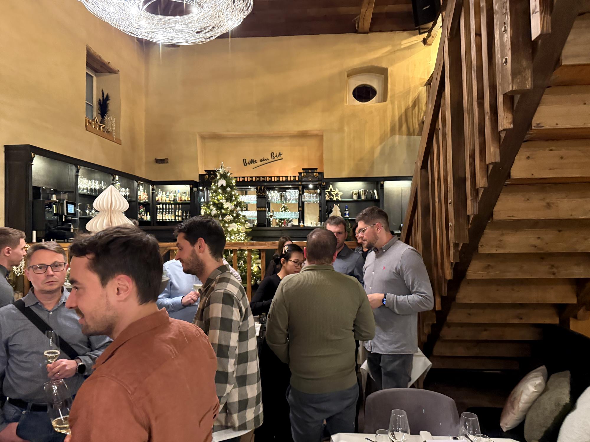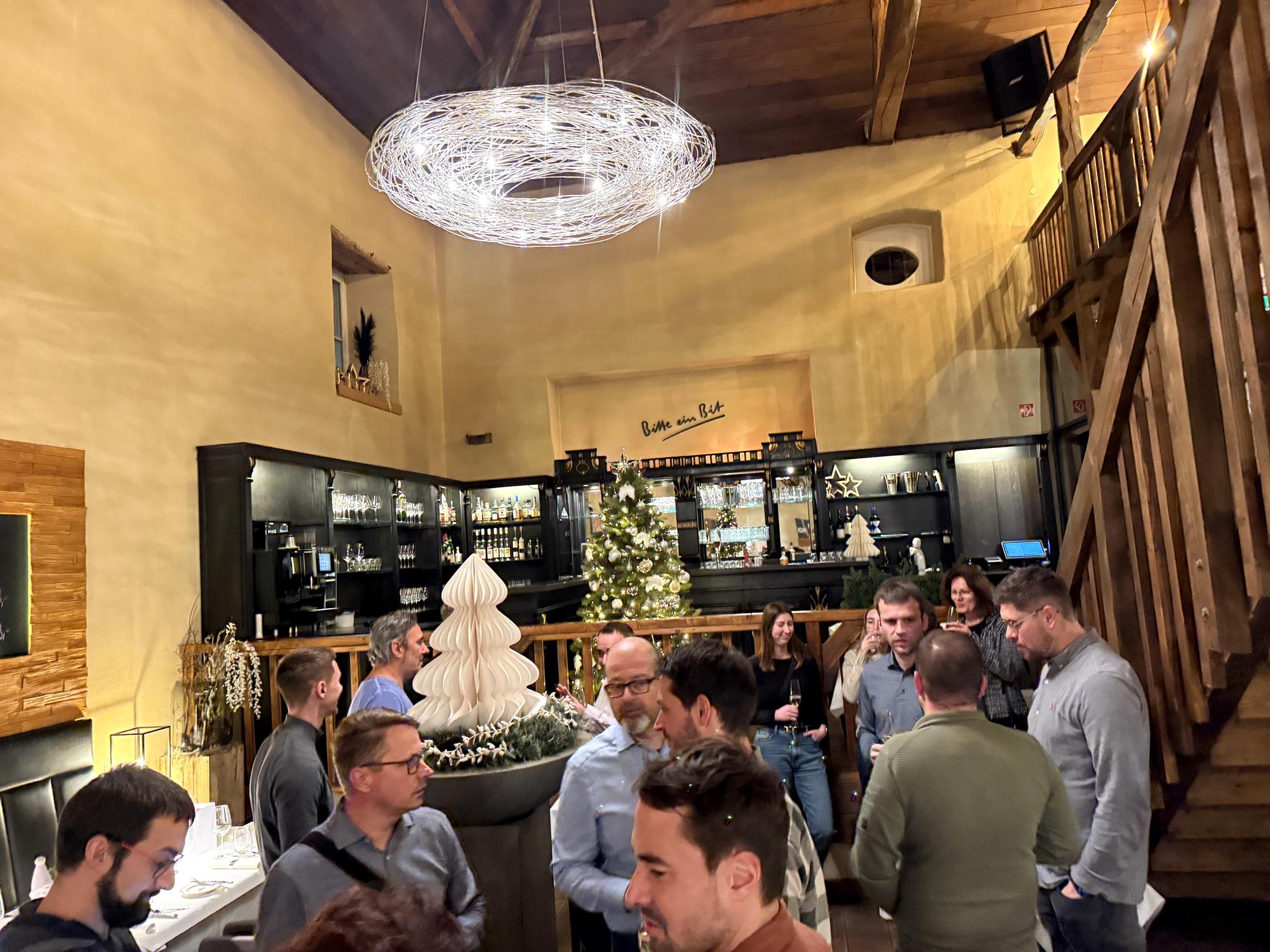 Le soir de notre fête de Noël, nous nous sommes retrouvés dans le cadre enchanteur du Château de Niederweis. Les lumières tamisées, les tables soigneusement dressées et le crépitement du feu dans la cheminée créaient une atmosphère festive et conviviale, propice à la détente.