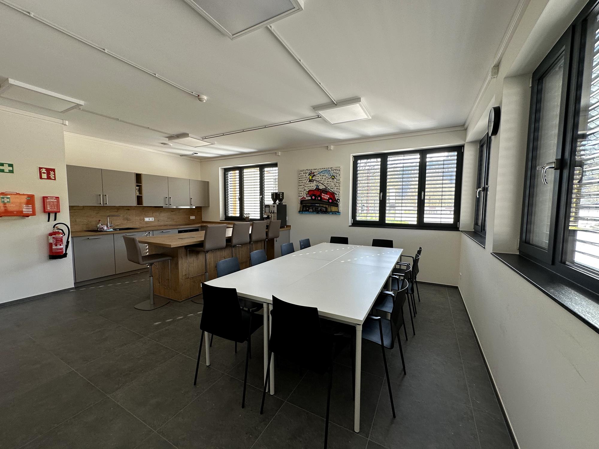 La partie administrative s’étend sur trois niveaux et comprend des salles de réunion, des sanitaires, des espaces de formation et de détente. La halle, quant à elle, offre quatre emplacements pour véhicules et des zones de stockage réparties sur deux niveaux. L’accessibilité pour les personnes à mobilité réduite est assurée grâce à l’installation d’un ascenseur.